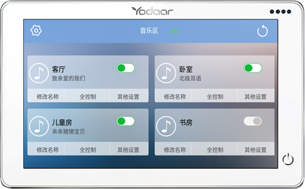 具備一屏四用功能的背景音樂中控屏,可同時作為背景音樂控制屏、智能家居中控屏、安防監控顯示屏、可視門鈴室內顯示屏,一塊面板,不僅能實現對全屋智能單品的集中操控,更通過場景模式的打造,讓各個智能單品之間高效互動,共同為高品質的智能生活服務。回家開啟“回家模式”,窗簾、燈光、新風系統等設備自動工作,離家選擇“離家模式”,安防系統自動運行,空調、燈光等設備自動關閉……正是借助這樣的集中控制平臺,悠達搭建起了完整的全屋智能生態鏈,并為下一步智能升級打下了夯實的基礎。
