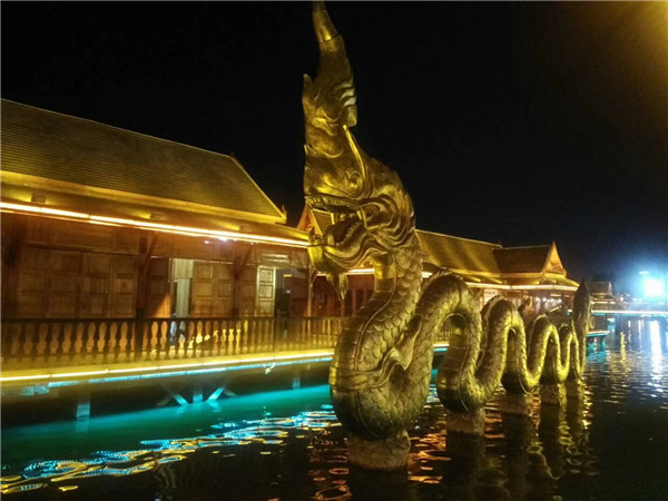 夜晚,燈光點亮大金三角最具特色、最具規模的夜市集群,特色美食、風情酒吧、咖啡甜點……各式店鋪貨攤應接不暇,六國水上集市、趕擺場、東南亞美食島、游船碼頭……大家坐上游船,乘著粼粼水波,吹著溫柔的晚風,盡情欣賞著這道瀾滄江畔最美的風景線。